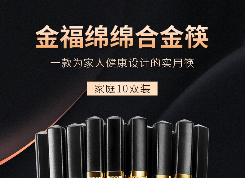 首页 > 购物专区 > 日常用品 > 金福绵绵合金筷子 家用酒店用 不锈不发霉家用合金筷子餐具套装 10双装