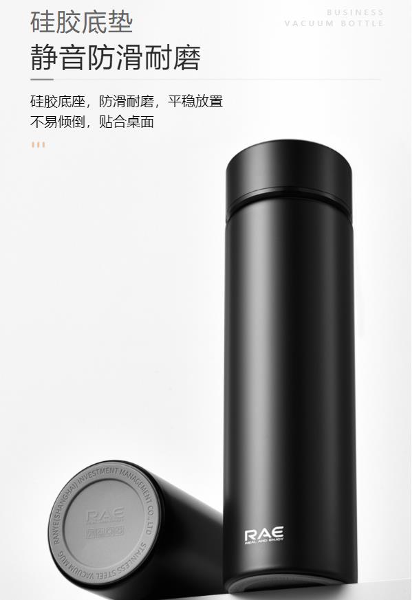 然也(RAE)500ml双层真空304不锈钢保温杯男女大容量带茶隔过滤泡茶杯便携商务办公水杯子太空灰R3319