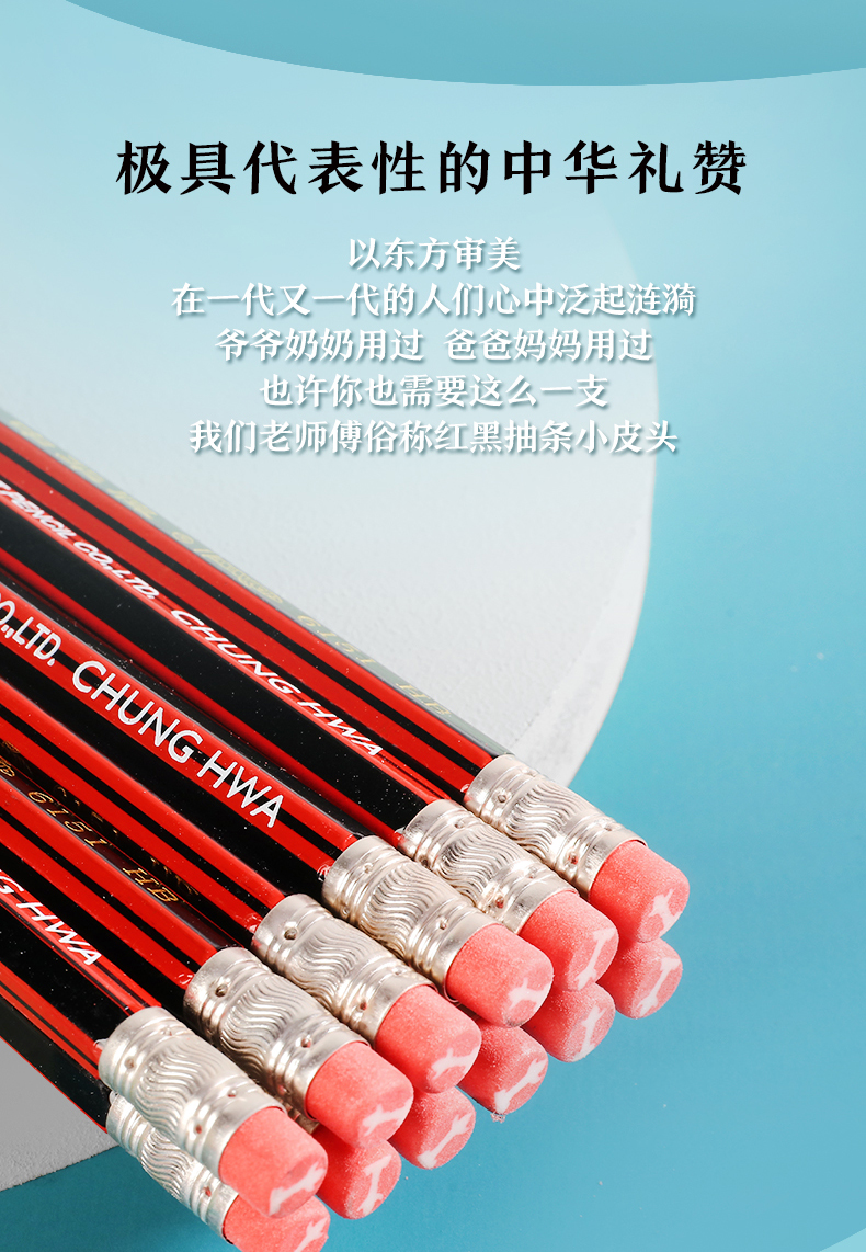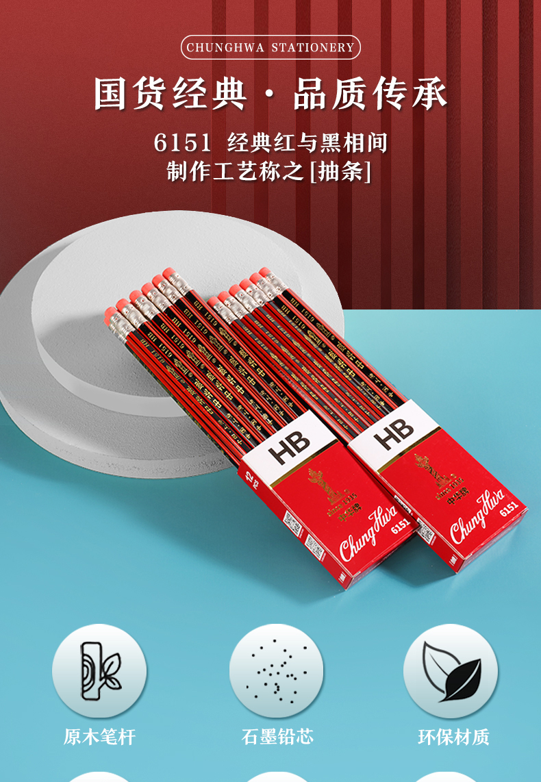 中华 经典红黑抽条学生办公书写HB铅笔六角 48支/盒 6151 HB