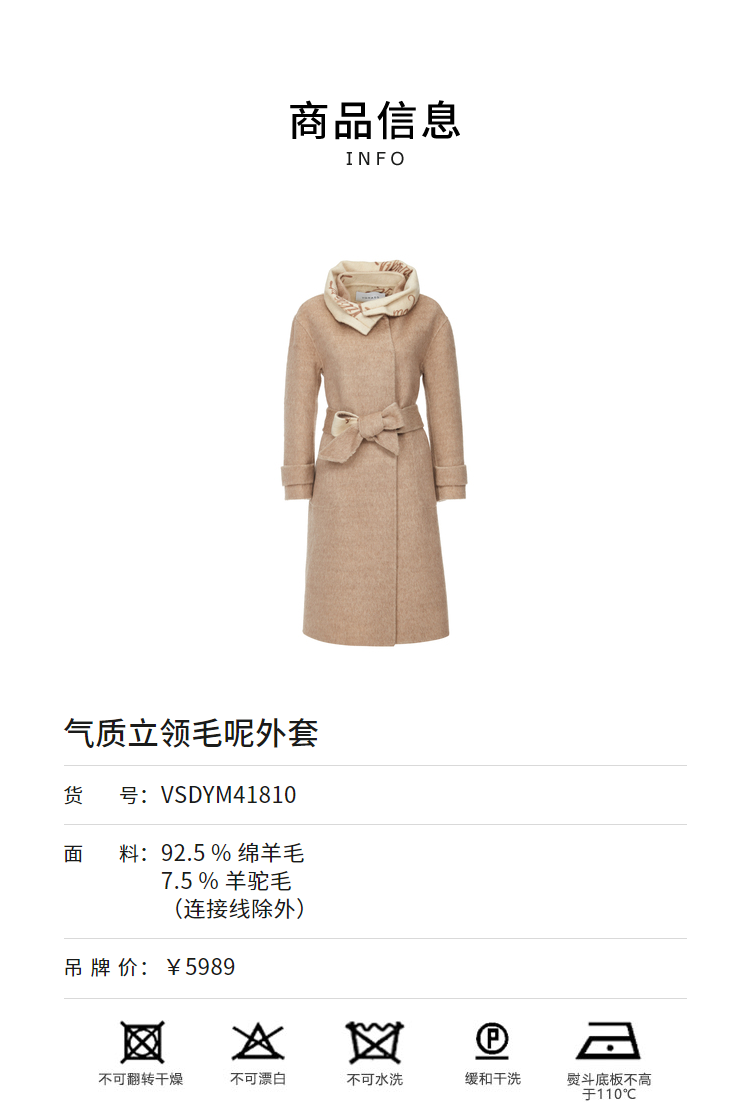 商品名称:vgrass维格娜丝2021年冬季新款商场同款毛呢外套VSDYM41810 咖色 4/S