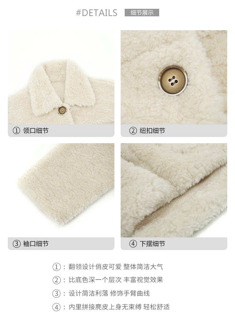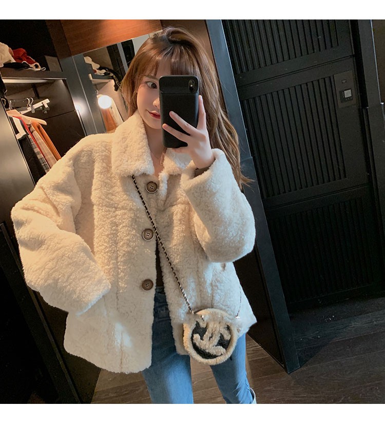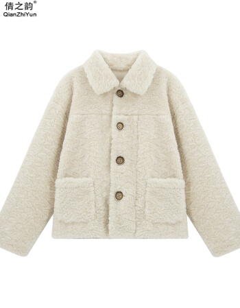 商品名称:倩之韵 羊羔毛外套女秋冬2021年新款女装韩版短款加厚皮毛一体颗套时尚百搭羊羔绒机车服潮 软糯白 M