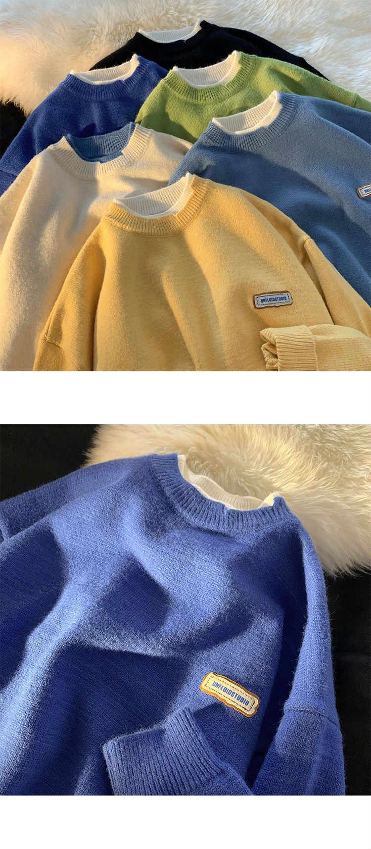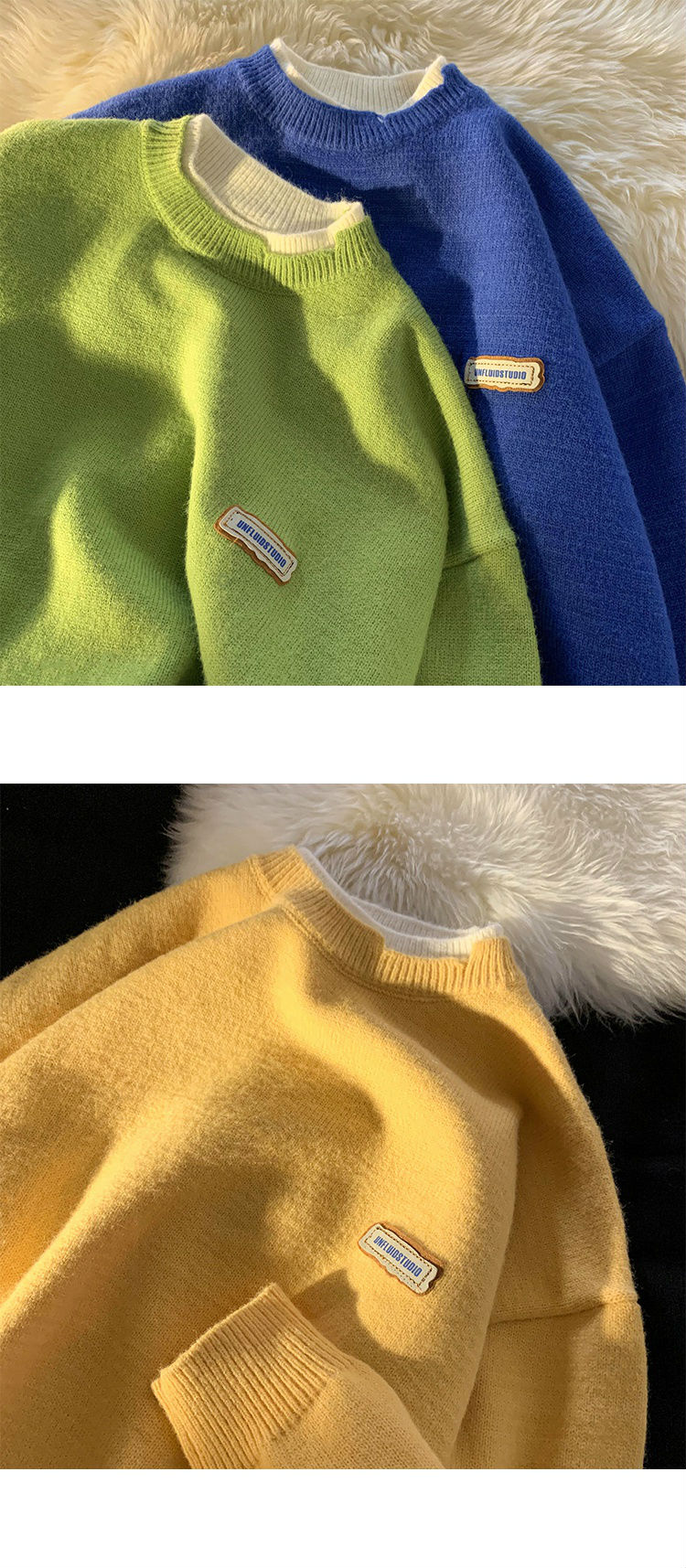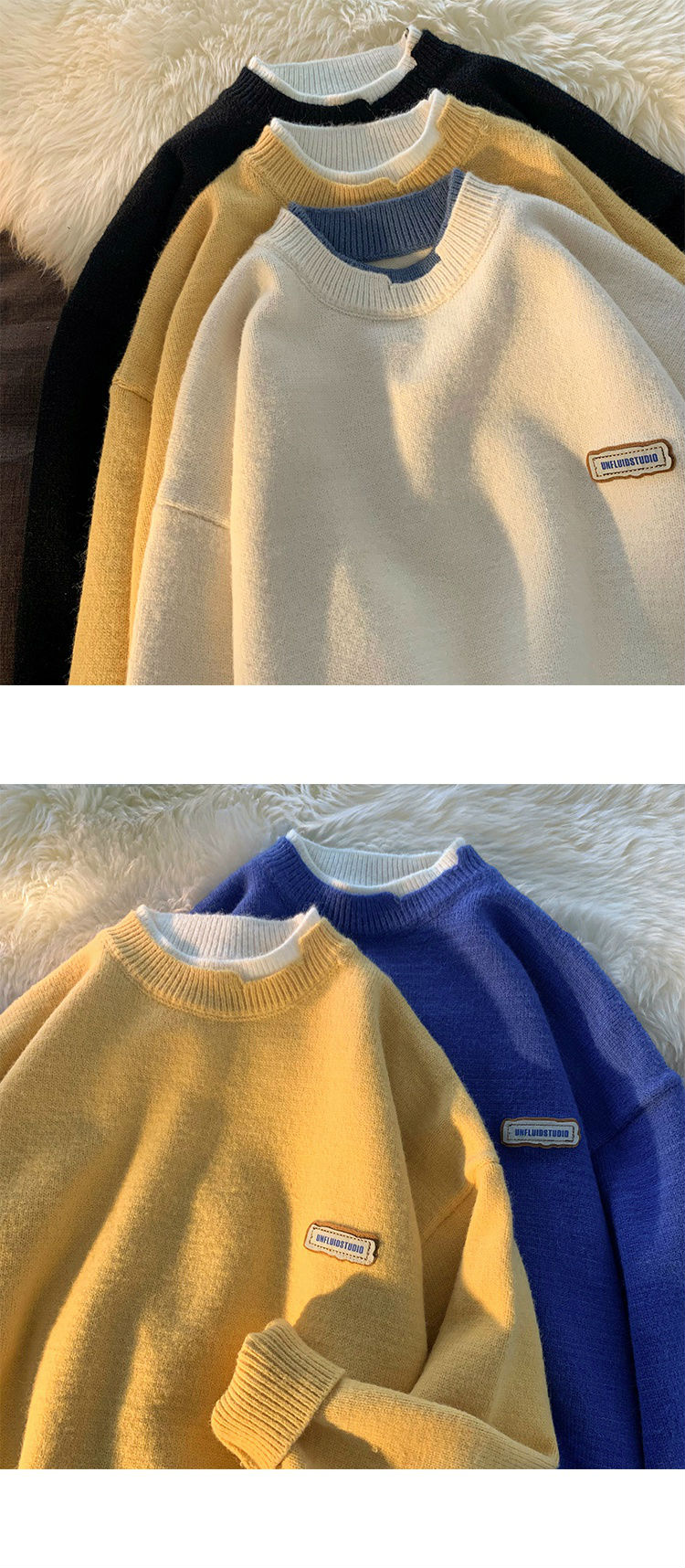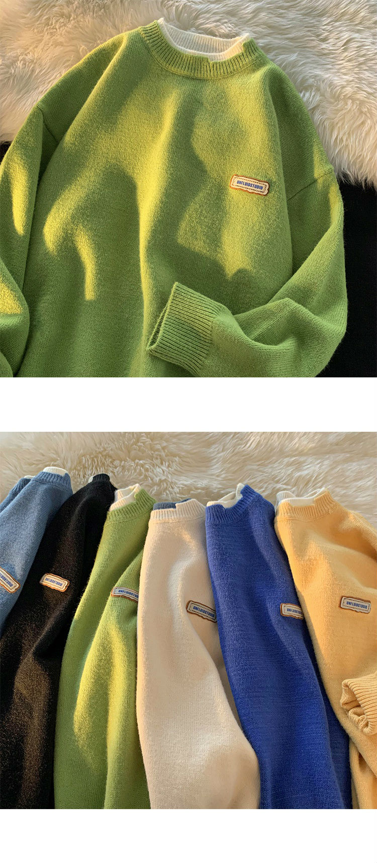 商品名称:艾漫登假两件针织衫毛衣男潮ins青少年宽松春秋2021新款情侣慵懒圆领外套 杏色 L