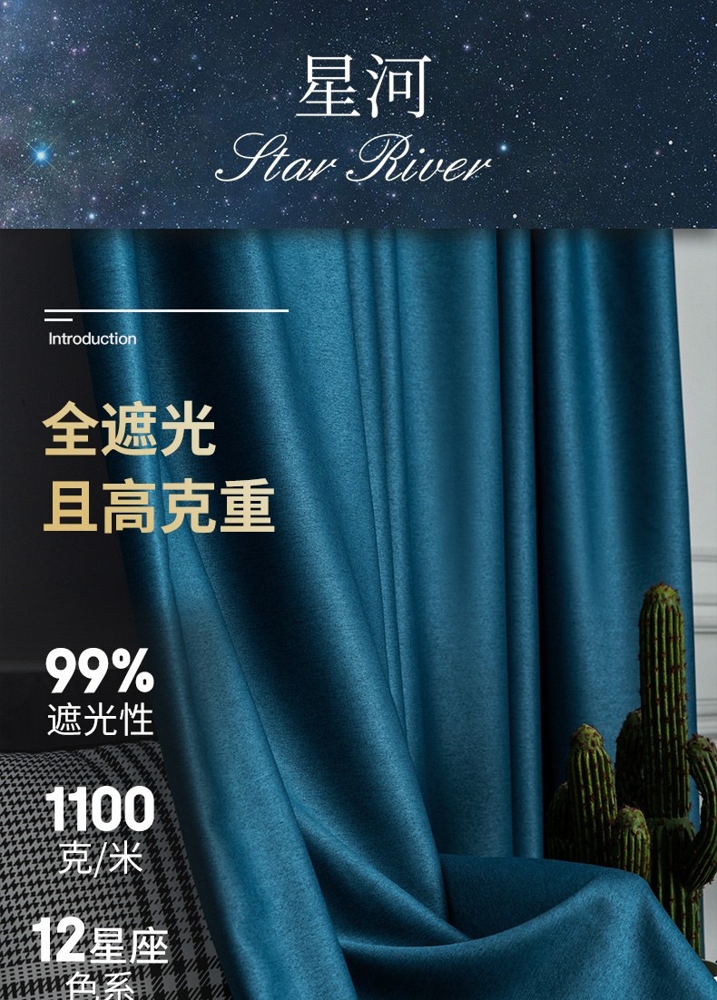 商品名称:金蝉高遮光窗帘防晒隔热客厅窗帘布卧室简约现代定制 星河(高遮光/十二色可选)——可作一米定金 一米面料价格(挂钩/打孔免费加工)需要几米拍几米