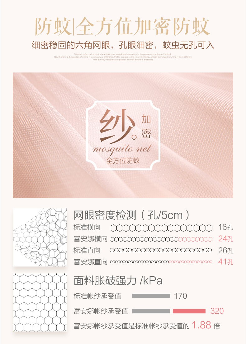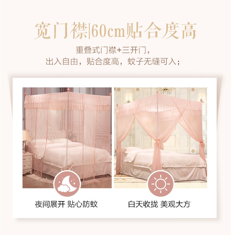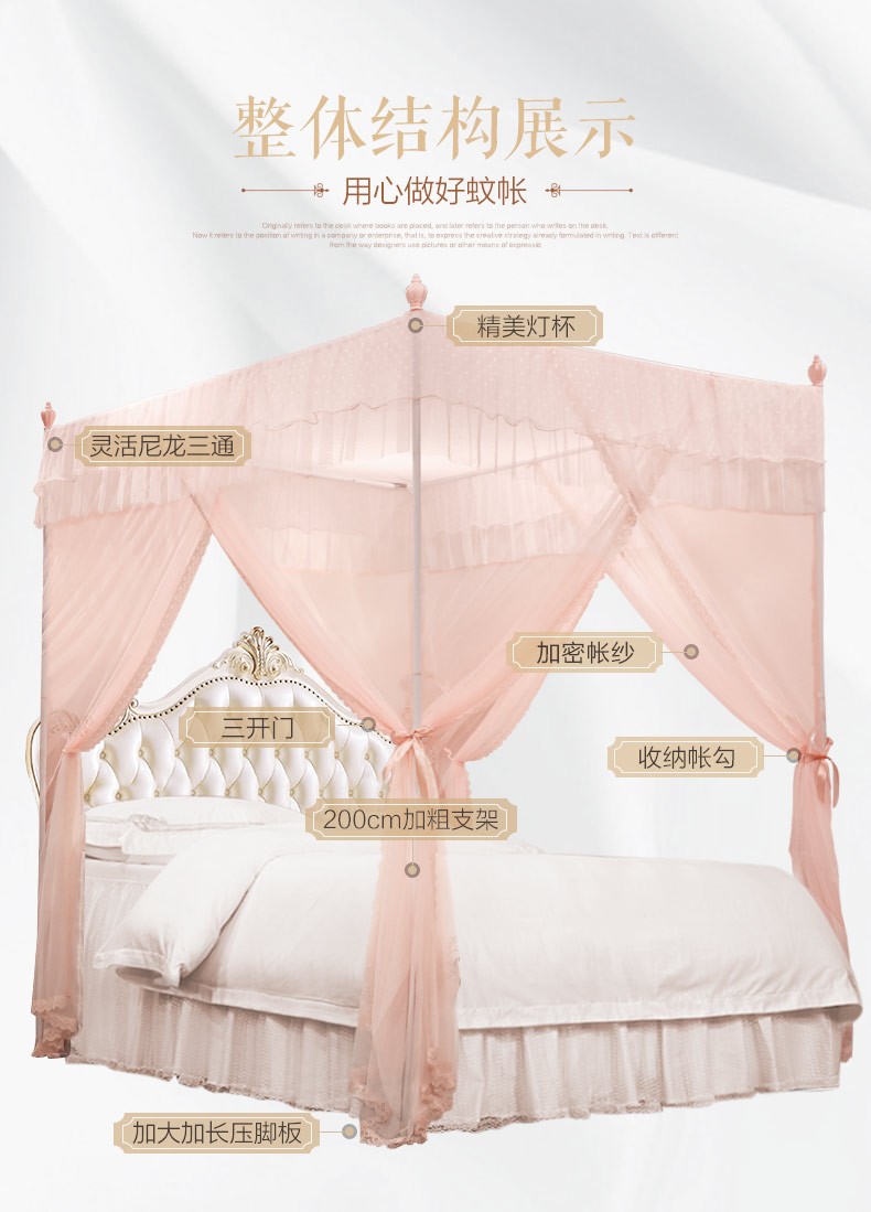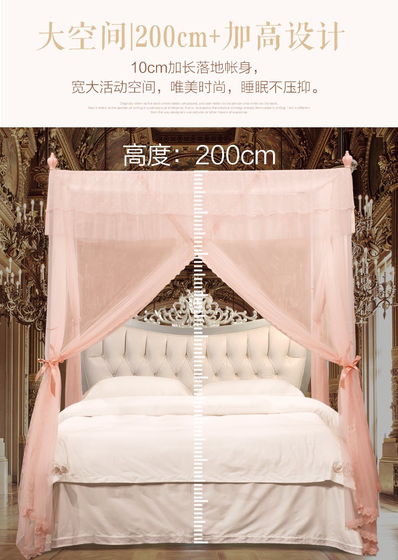 商品名称:富安娜家纺 床帘蚊帐双人床宫廷式落地帐3开门式 三开门-支架款-粉色 1.8米(180*200cm)