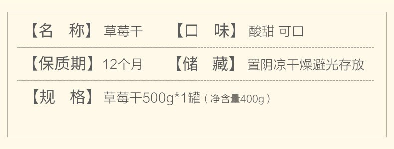 商品名称:秋淘 草莓干连罐500g罐装孕妇水果干儿童果脯蜜饯办公室零食烘焙用 草莓干400g