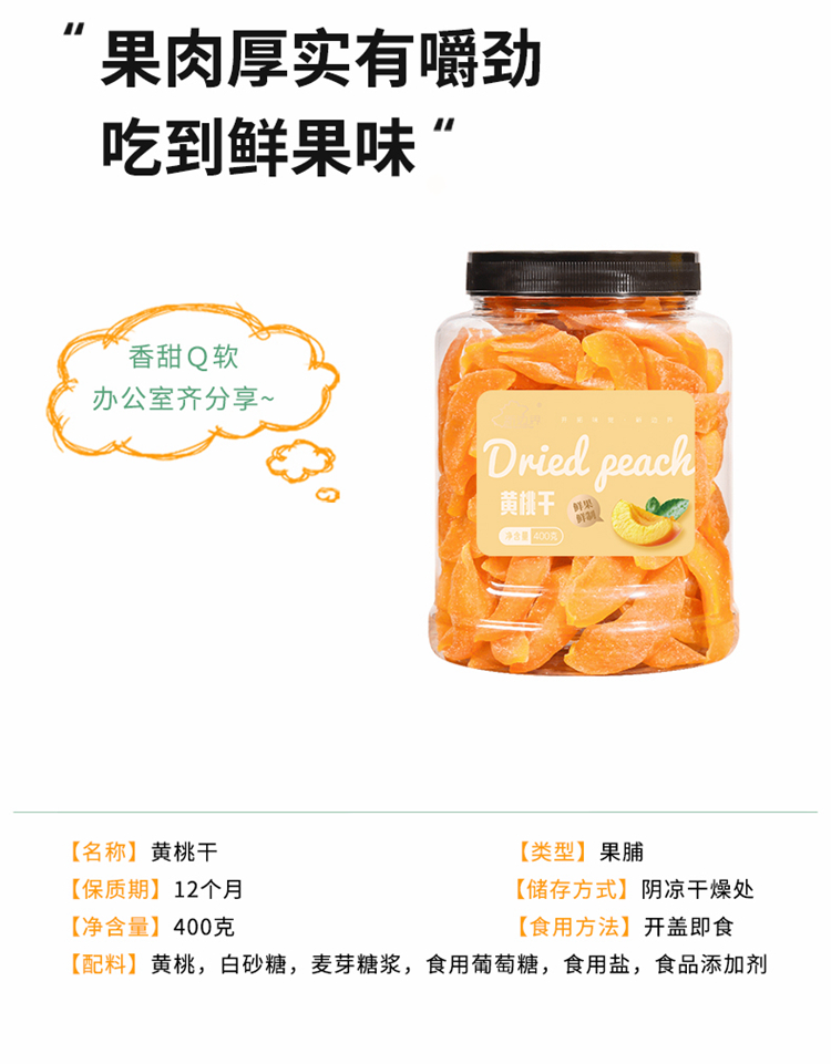 商品名称:新边界黄桃干400g