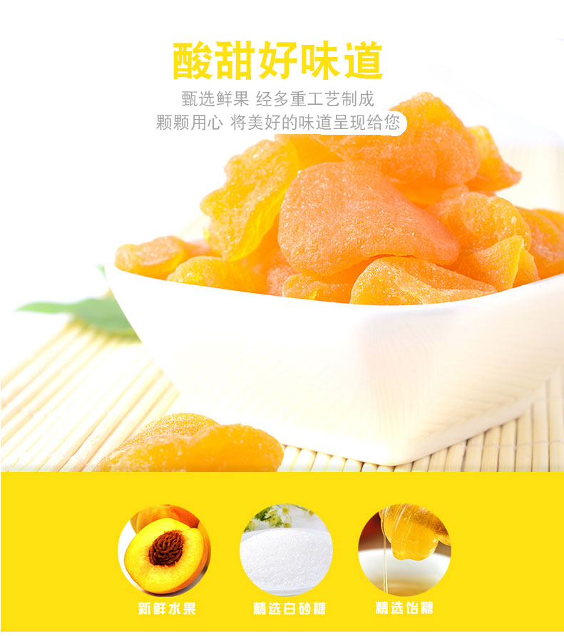 商品名称:鲜引力黄桃果干500g 独立装桃肉果脯干蜜饯办公室休闲零食蜜桃干 黄桃果干500g